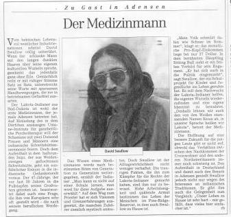 Ureinwohner und den anderen Nordamerikanern immer noch schwierig ist. Den Aufenthalt in Deutschland und damit auch den Besuch in Adensen genießt Swallow jedoch nicht nur wegen des Interesses an indianischen